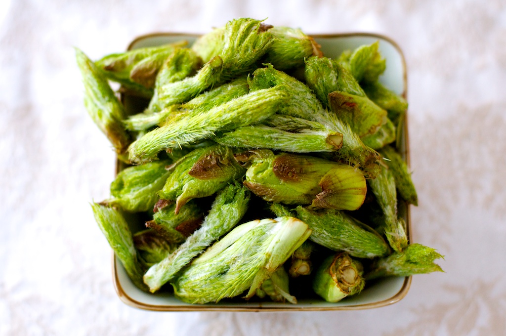 The buds have a resinous, piney flavor that strikes me as a powerful distillation of a Northwest conifer forest. I've used them to infuse cream for a chocolate sauce and to lend a woodsy edge to a bordelaise sauce. They're terrific simply sautéed in butter. With this in mind, I decided to stir-fry this batch to go with some Sichuan leftovers.